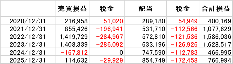 2025年も過ぎて、年間取引報告書も出そろったので、2025年の投資結果をまとめてみた。2025年は2024年から引き続き、翌年の健康保険料や住民税を抑えることを目的として、年末に損切を行っているので、株の売買によるキャピタルゲインは低く抑えている。